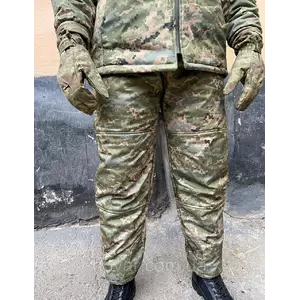 Штани високого крою, завдяки чому поясниця знаходиться в теплі, манжети на резинках з затяжками. Розстібаються блискавкою знизу аж до стегон для швидкого доступу до ноги у разі поранення.