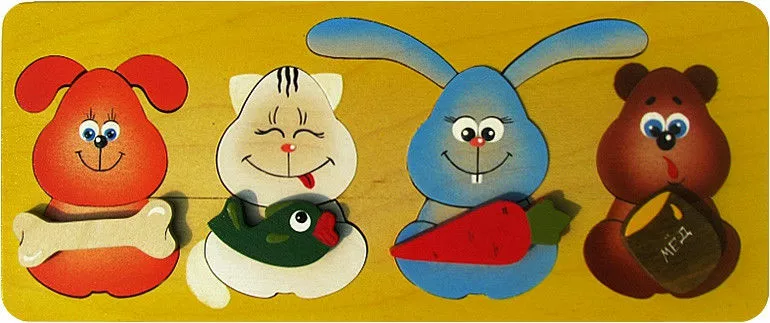 Деревянные вкладыши-пазл «Лакомки», зверюшки состоят из двух частей