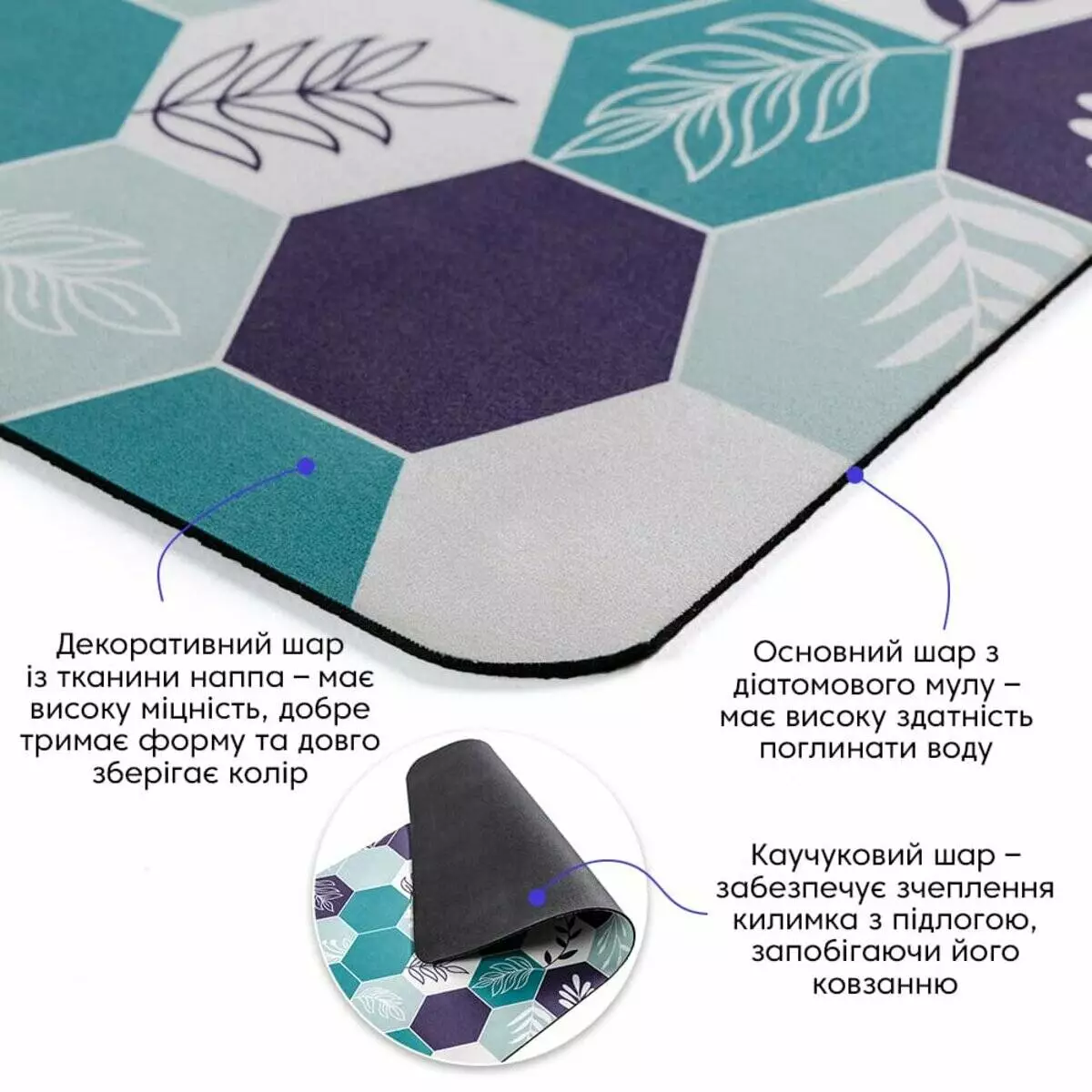Каучуковий шар – забезпечує зчеплення килимка із підлогою,
