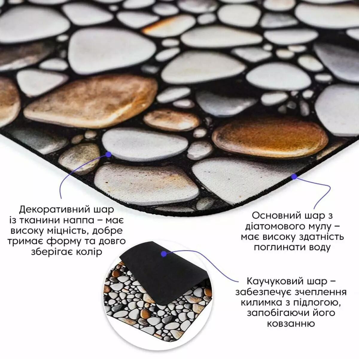 Каучуковий шар – забезпечує зчеплення килимка із підлогою,
