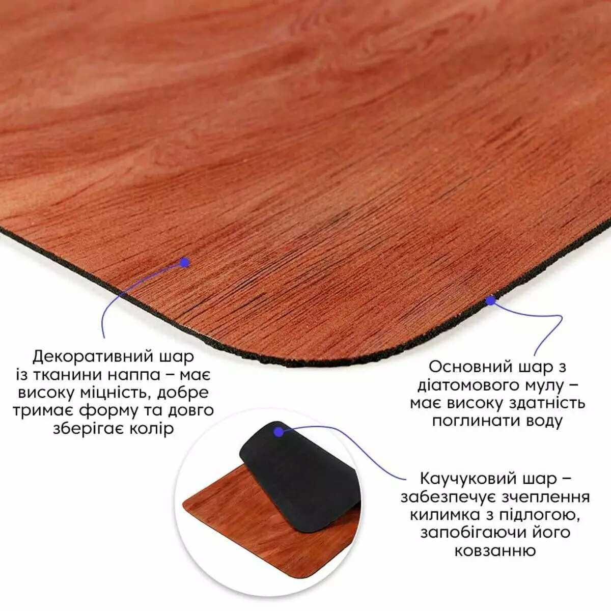 Каучуковий шар – забезпечує зчеплення килимка із підлогою,