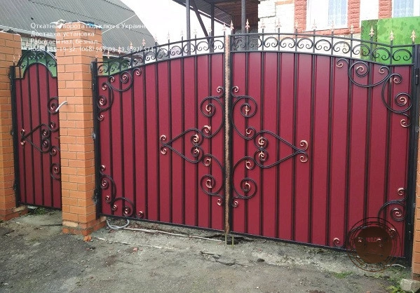 заполняется профнастилом, штакетником из металла или сеткой. Ворота