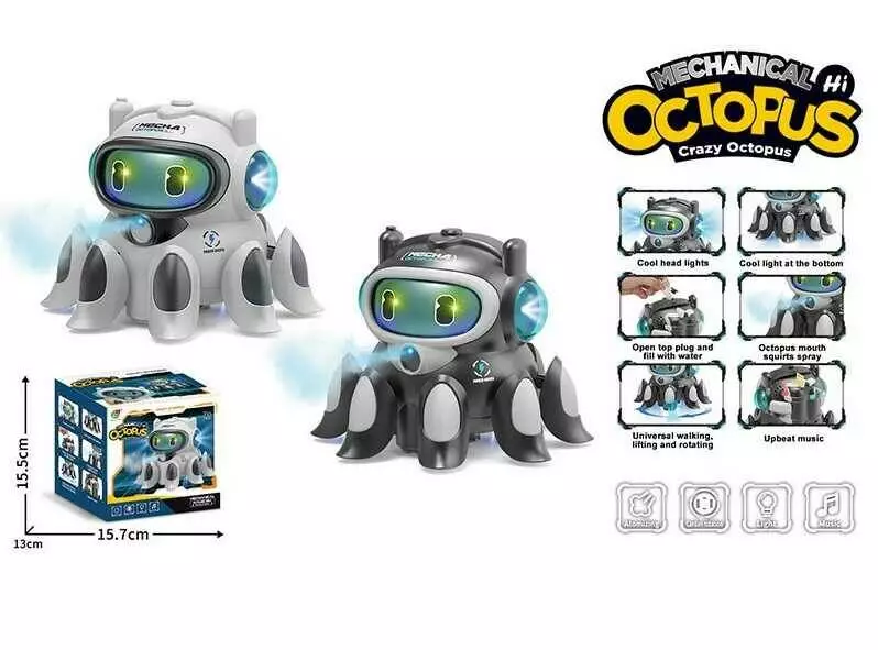 Музичний восьминіг 3383 (72/2) 2 види, підсвічування, звуки, на батарейках, парогенерація, колесо вільного ходу, в коробці, ВИДАЄТЬСЯ МІКС
