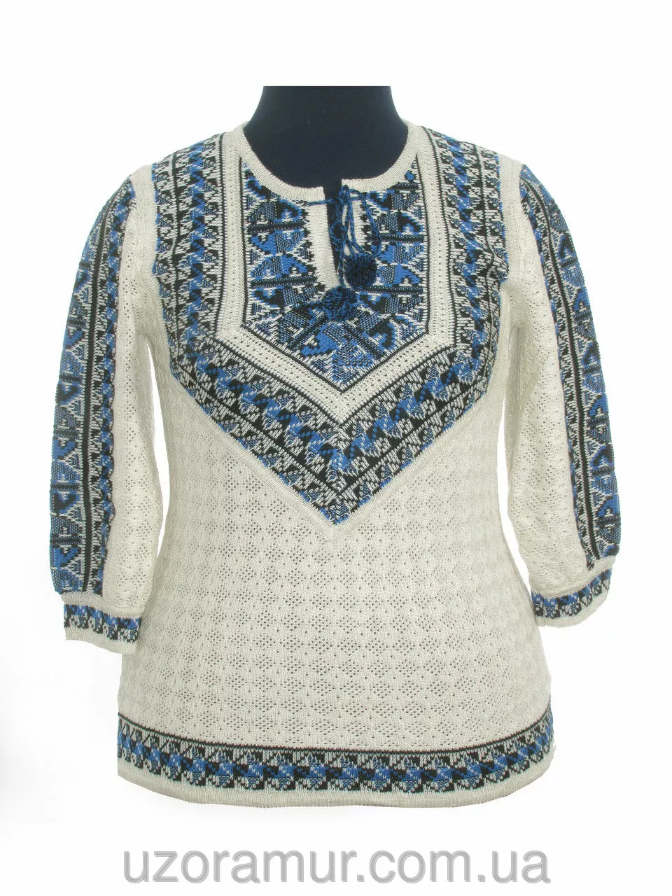 В'язана жіноча вишиванка Мирослава синя 3/4