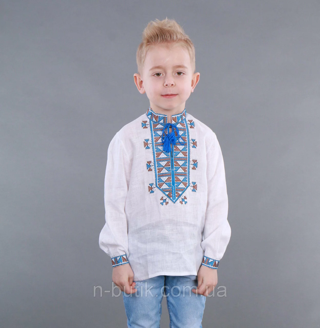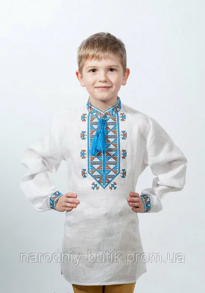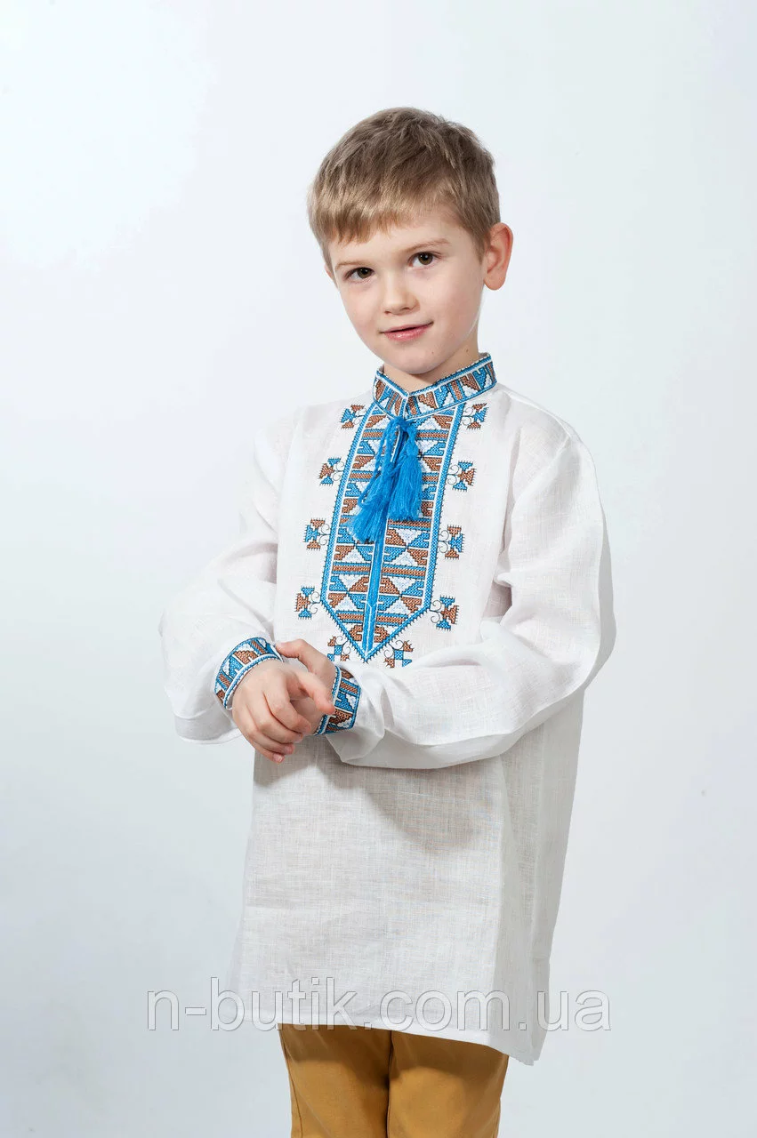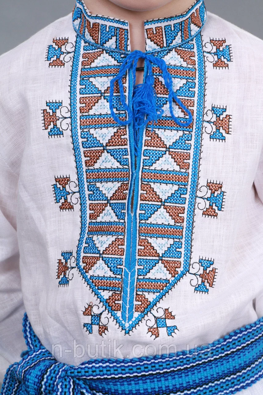 Детская вышиванка для мальчика с голубым орнаментом