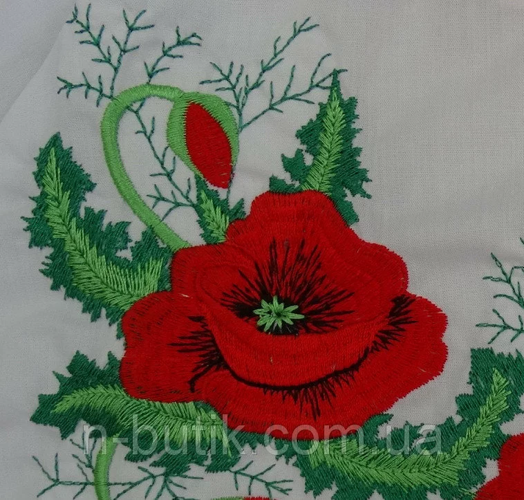 Машинная вышивка гладью делает орнамент из маков необычайно