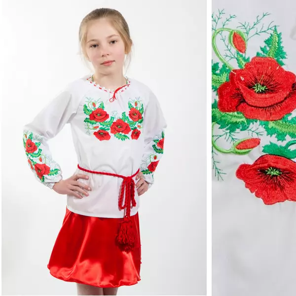 Нарядная вышиванка для девочки с красными маками