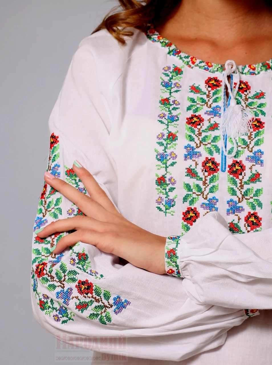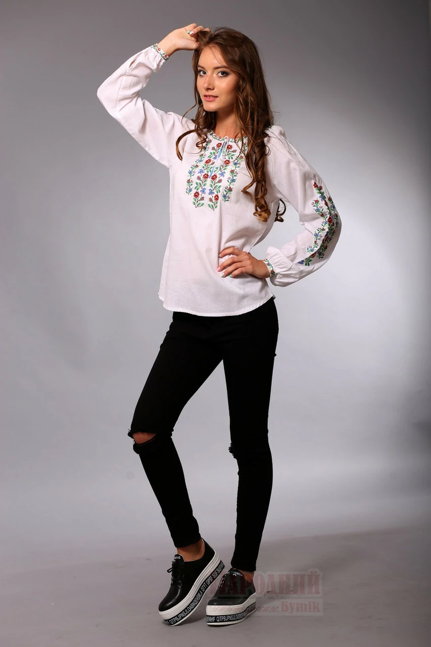 Гуцулка - вышиванка из белого домотканого полотна с цветочным