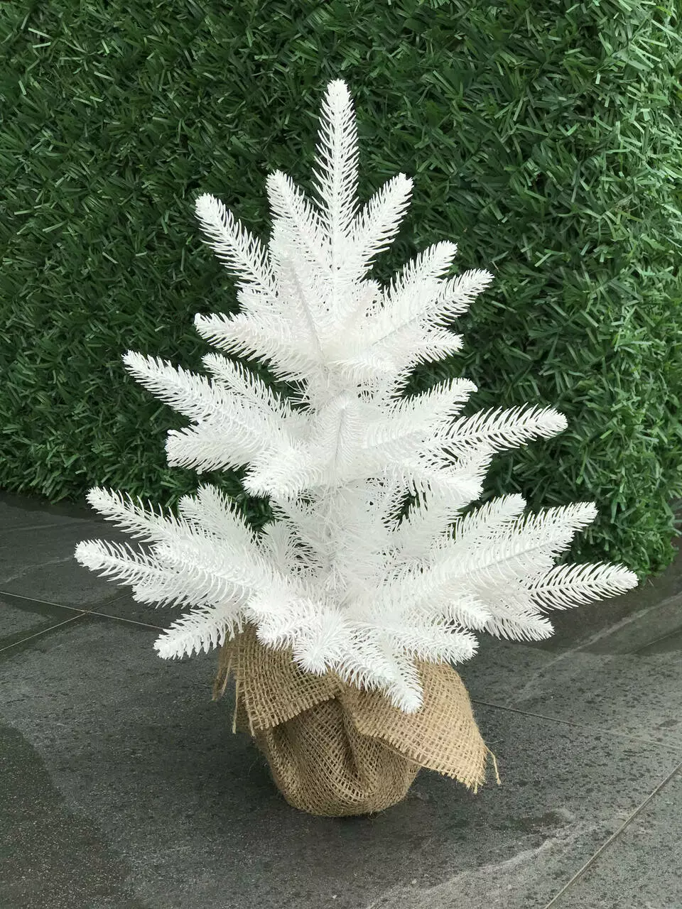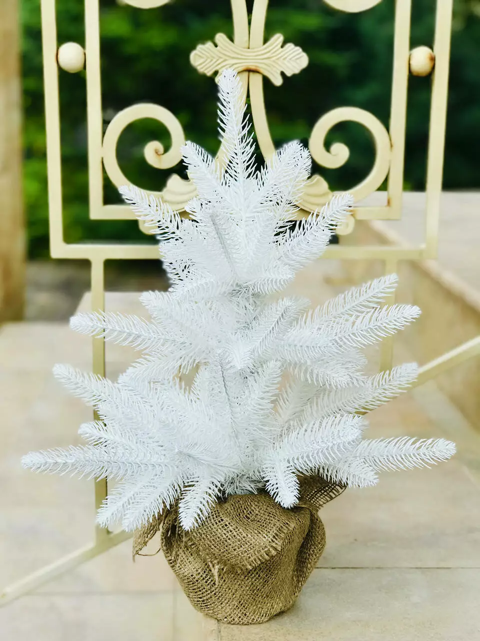 Компактна штучна лита ялинка виглядає ошатно навіть без додаткових прикрас. Всі голочки - литі, точна 3D імітація хвої живої ялинки. Встановлена у горщик, прикрашений мішковиною, з обважнювачем всередині - для захисту від перекидання.