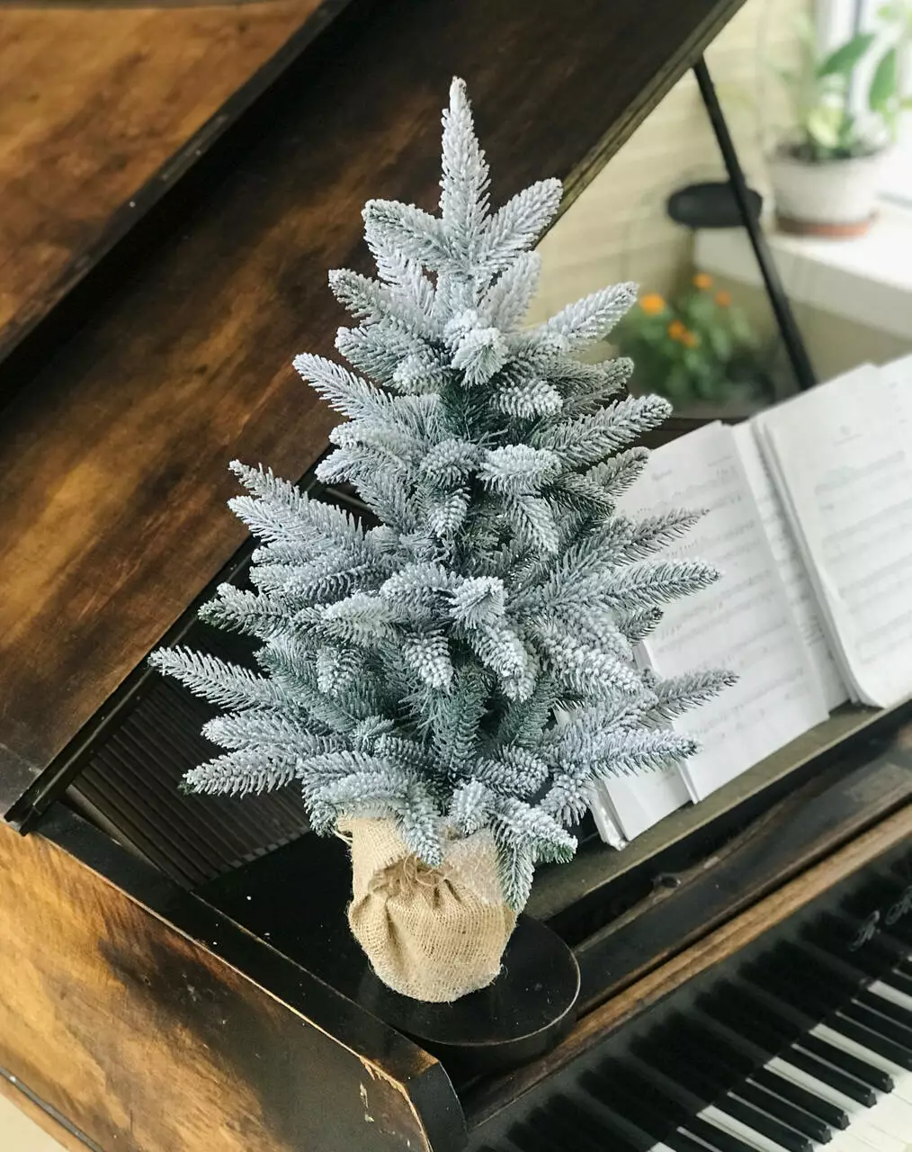 Компактна штучна лита ялинка виглядає ошатно навіть без додаткових прикрас. Всі голочки – литі, точна 3D імітація хвої живої ялинки. Встановлена в горщик, прикрашений мішковиною, з обтяжувачем усередині - для захисту від перекидання. Об'ємне густе напилення на ялинці, реалістично імітує сніг, що щойно впав на гілки пухнастими пластівцями. Матеріалом розпилення є натуральна бавовна, вона екологічна і не має запаху, безпечна для дітей та дорослих.