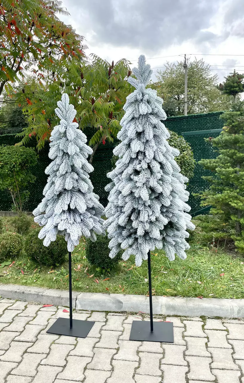 Лита штучна ялинка HVOYA Style Lux – це поєднання елегантності та сучасного дизайну, яке додасть вашому святковому декору витонченості та стилю. Її головна дизайнерська особливість – висока металева стійка чорного кольору, яка виконує роль стовбура і створює оригінальний контраст із засніженими гілочками. Вузька форма додає ялинці витонченості, а литі гілки створюють враження справжньої засніженої ялини, надаючи вашому інтер'єру відчуття справжньої зимової казки.