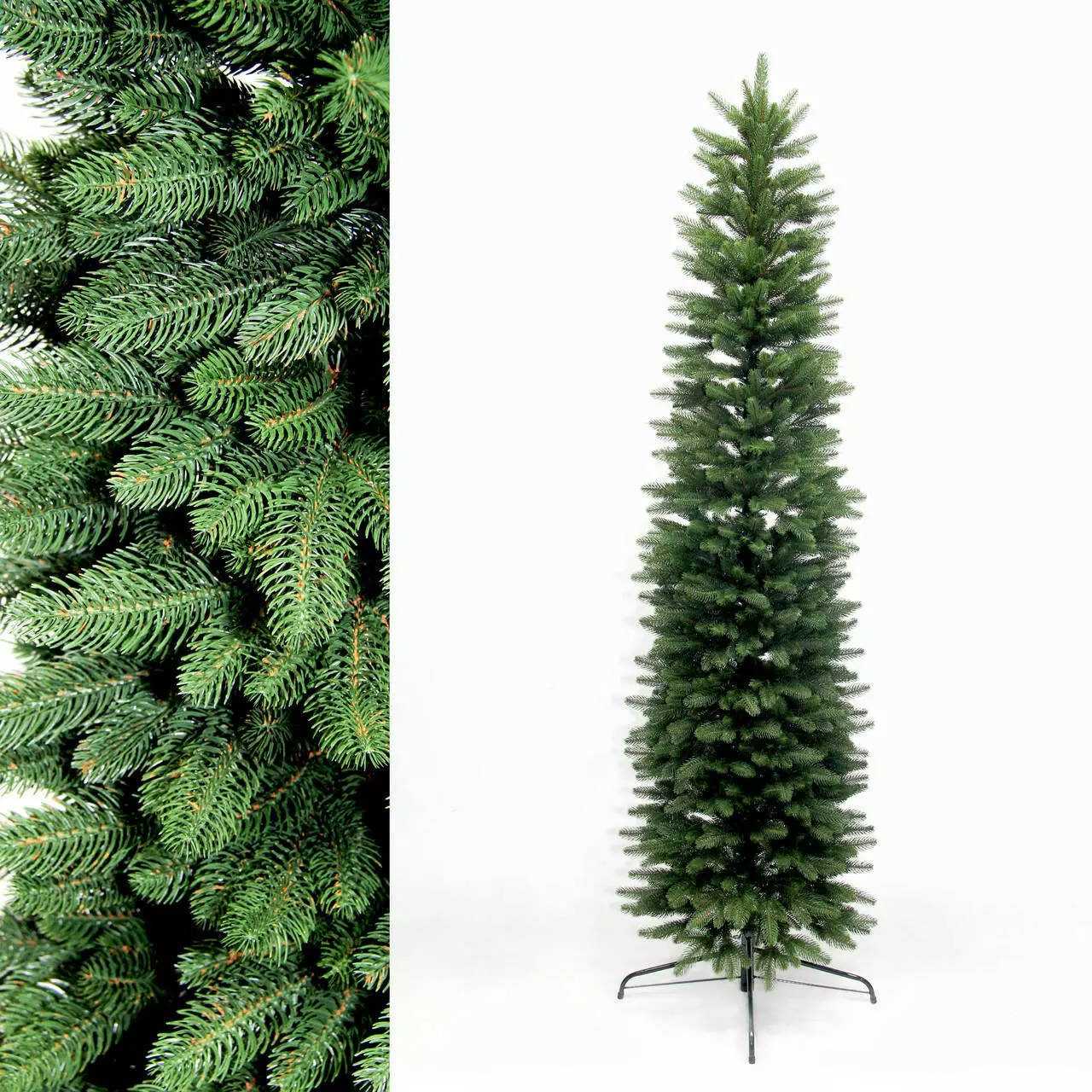 Новорічна лита ялинка "Альпійська", спроектована спеціально для невеликих або вузьких приміщень. Нижні гілки коротші, ніж у класичній моделі. Завдяки цьому, святкову атмосферу ви можете знайти навіть в коридорі, невеликій кімнаті, залі і подібних місцях. Ялинка прекрасно прилягає до стіни і економить простір. Особливо актуальна для власників міських квартир, невеликих кафе і ресторанів.