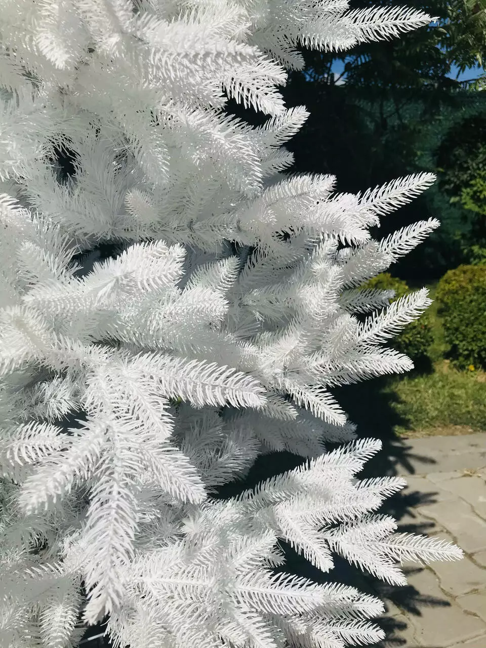 Порада: для білих ялинок краще використовувати електрогірлянди з білим свіченням. Тоді ялинка виглядає ще більш повітряною та казковою. Біле світіння робить білу ялинку напівпрозорою і ніби навіть примарною.