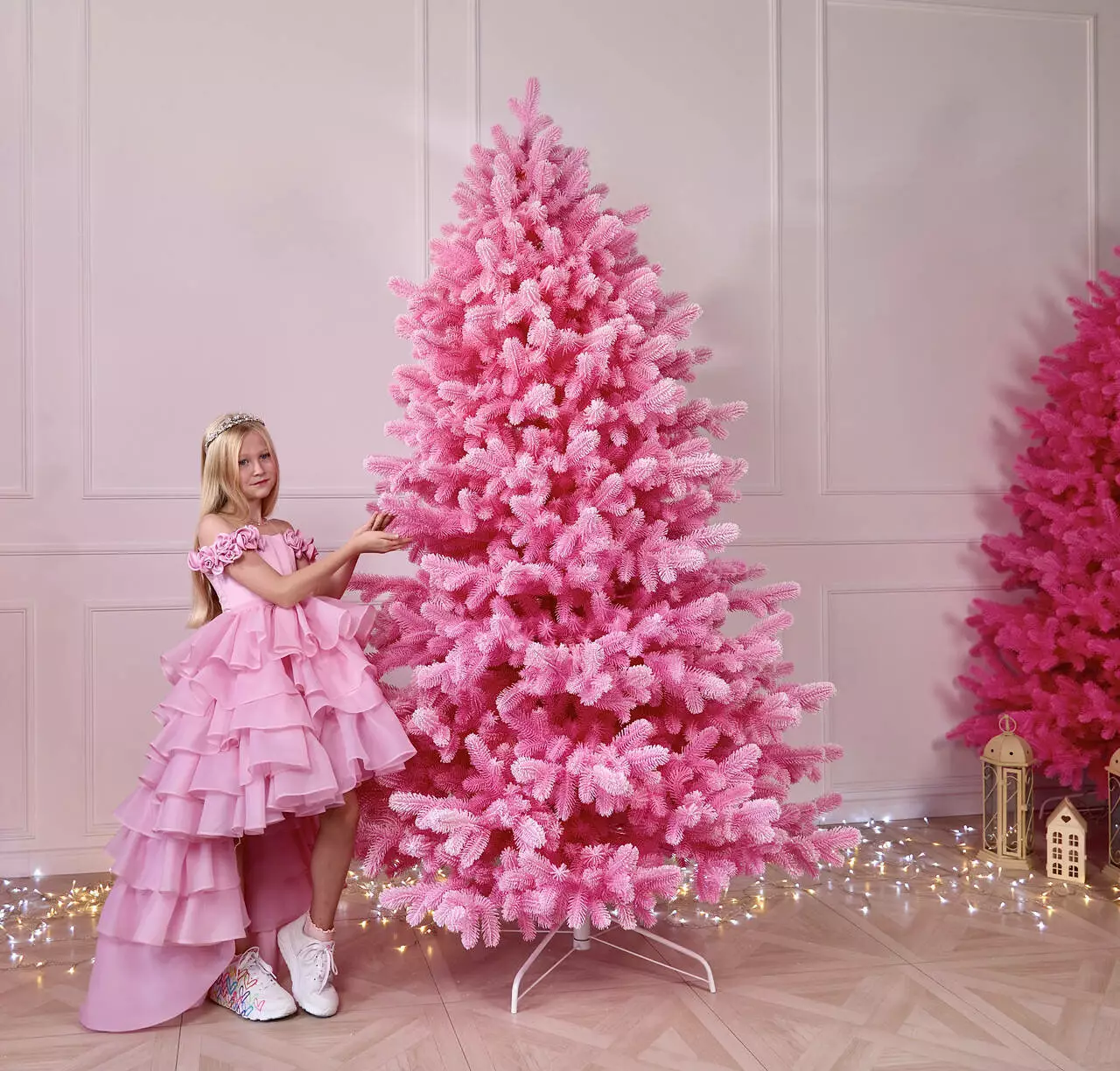 Зроблена з 100% литої хвої, ялинка має щільну, преміальну структуру, а колір Marshmallow Pink — справжня новинка сезону 2025–2026.