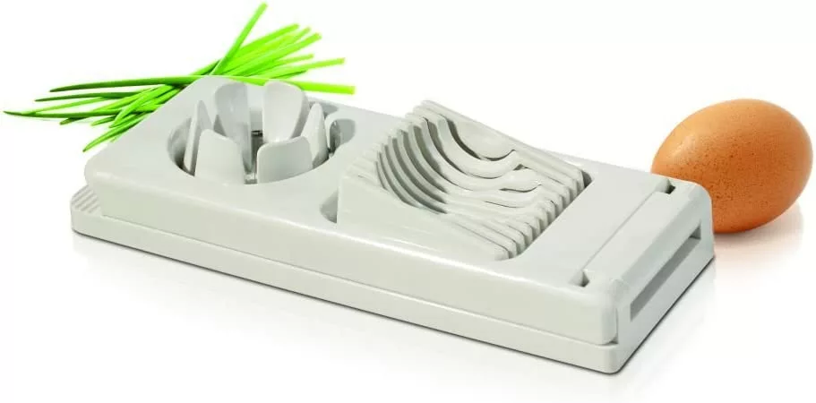 Яйцерізка Enrico виготовлена із висоякісного пластику із пластиною з нержавіючої сталі та натяжними дротами для порізки. Має функцією 3 в 1: нарізає круглі та овальні скибочки або частинки із одинакових 6 розмірів. Дроти з нержавіючої сталі є  надзвичайно міцними, і їх можна використовувати протягом тривалого часу з невеликими зусиллями. Порізані шматочки продукту візуально надзвичайно привабливі для їжі. Може використовуватися для різних продуктів, таких як яйця, гриби, ківі та картопля в мундирі, які можна приготувати рівномірно та точно. Яйцерізку легко мити в посудомийній машині.
