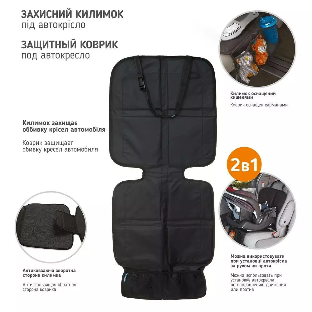 Фотография 1 товарной позиции интернет-магазина детских игрушек www.smarttoys.com.ua Захисний килимок під автокрісло ME 1072 116-47 см., 3 кишені (сітка), чорний, кор., 23-29,5-10 см.