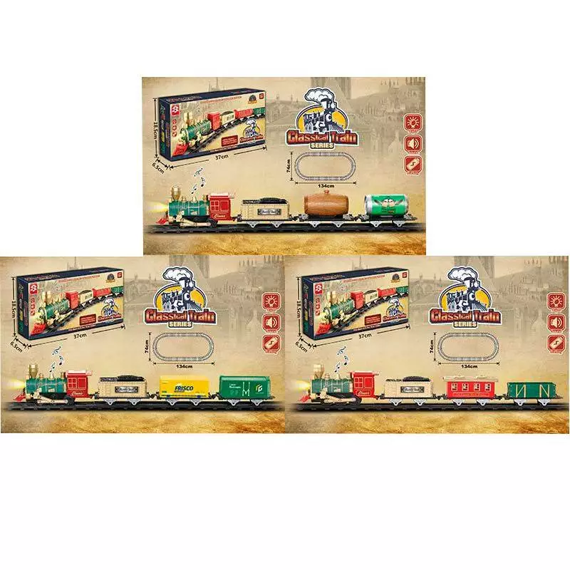Фотография 1 товарной позиции интернет-магазина детских игрушек www.smarttoys.com.ua Залізниця 3117ABC 134-74 см., локомотив, 3 вагони, 3 види, муз., світло, бат., кор., 37-18,5-6,5 см.