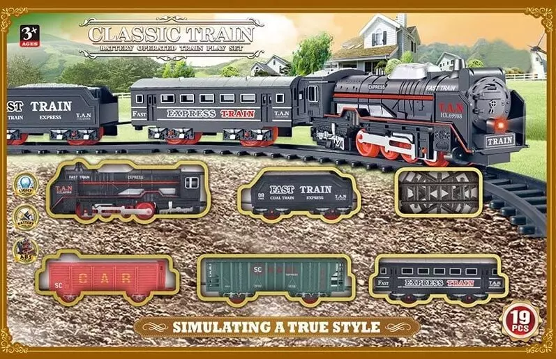 “Classic Train” - це чудово деталізована залізниця з великою кількістю декорацій, що відтворюють стиль і атмосферу старовинних потягів. Паротяг плавно рухається колією, ведучи за собою 4 різних вагони, що надає грі живий ритм і енергію. У цьому мініатюрному залізничному світі є магія, що переносить нас у часи пригод і безтурботності. Вона зачаровує дорослих і дітей, запрошуючи їх у неймовірну подорож звивистими шляхами. Особливості: - ігровий набір відрізняється чудово опрацьованим дизайном та гармонійним поєднанням кольорів; - локомотив працює від 2-х батарейок типу "АА"; - відсік для батарейок розташований під дахом паротяга; - ефектне підсвічування; - у наборі представлені 4 вагони та локомотив; - велика кількість декорацій; - всі елементи виготовлені з первинного пластику, який відмінно витримує активні дитячі ігри.