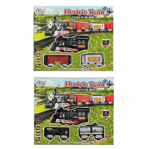 Залізниця JHX6673-75 локомотив, 2 вагони, знаки, 2 види, муз., світло, бат., кор., 35,5-29-6 см.