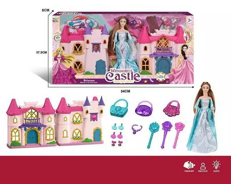 Замок з лялькою KDL 60 (16) лялька висотою 28 см, шарнірні з’єднання, знімний одяг, аксесуари, замок складається, в коробці