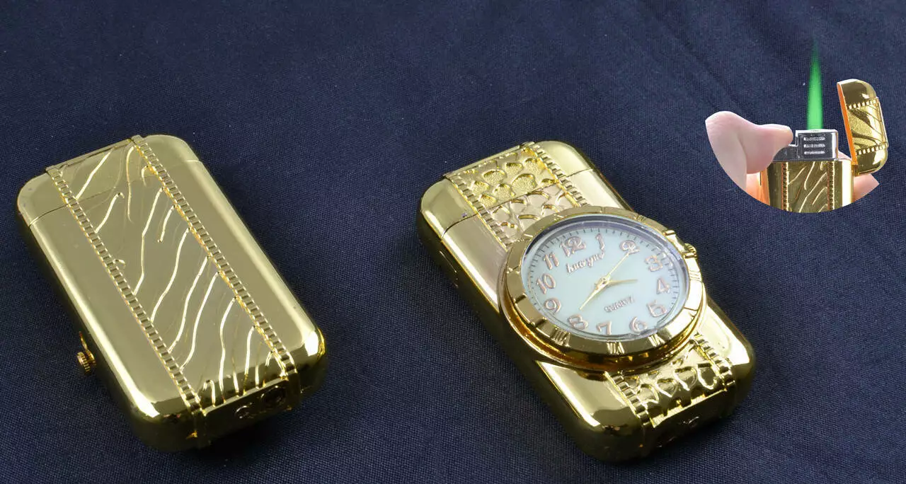 Зажигалка карманная с часами Сердечко (Турбо пламя) №XT-3922 Gold
