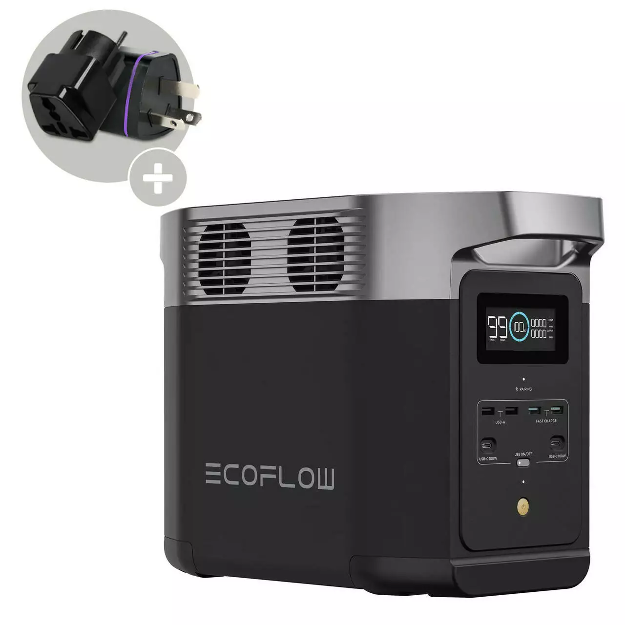 Зарядная станция портативная EcoFlow Delta 2 1024 Вт*ч 2200W Max. Экофлоу резервный источник питания, азиатская версия, подходит под евро вилки. Переходники на европейскую розетку в Подарок! Работает от сети 220В без дополнительных преобразователей! (4 переходника в Подарок).