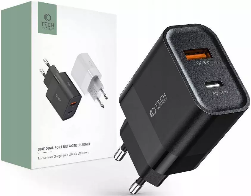 Оснащен портами питания: USB-C (PD30W) и USB-A (QC3.0)