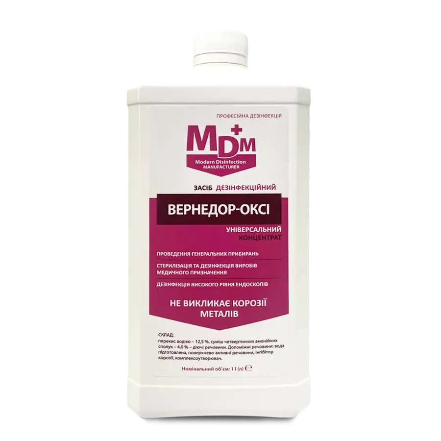 «Вернедор-Оксі» — це високоефективний дезінфекційний засіб широкого спектру дії. Має бактерицидні, віруліцидні, фунгіцидні та спороцидні властивості. Підходить для дезінфекції, передстерилізаційного очищення та стерилізації медичних виробів, поверхонь і предметів у закладах усіх типів.