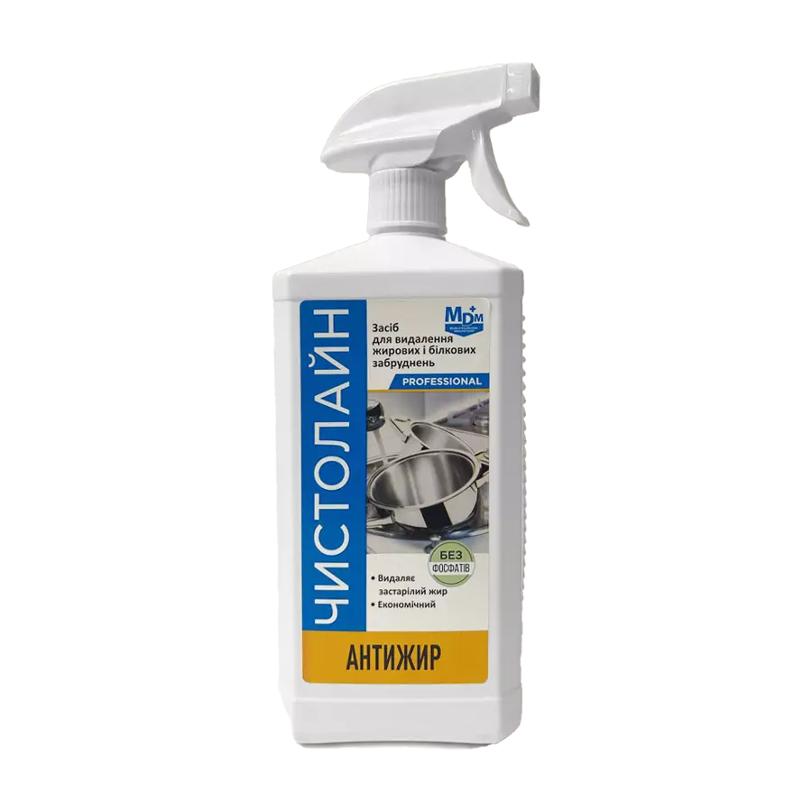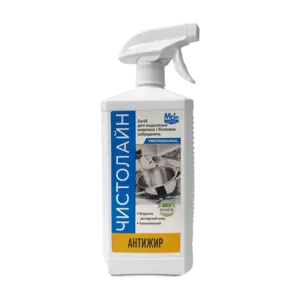 Миючий засіб «Чистолайн Антижир» — це концентрований прозорий лужний засіб із оптимальним вмістом натрію гідроксиду, органічного розчинника та неіоногенних ПАР, призначений для швидкого й ефективного видалення стійких жирових, білкових і коптильних забруднень, нагару та кіптяви з емальованих, керамічних, скляних і нержавіючих поверхонь, а також обладнання термічної обробки. Засіб не містить фосфатів і безпечний для обладнання й навколишнього середовища.