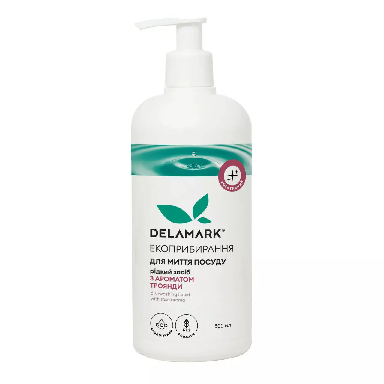 Мийний засіб для посуду De La Mark з ефірною олією троянди — має