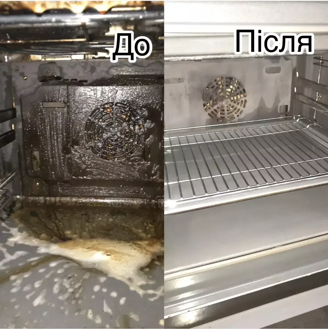 Для достижения наилучшего результата, мы рекомендуем воспользоваться техникой от нашей клининговой компании: для легкого удаления жира и нагара нагрейте поверхность (например, духовку максимум до 100 градусов), нанесите средство, подождите реакции, и после того, как все немного остынет, приступайте к чистке.