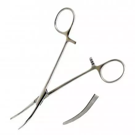 Зажим медицинский изогнутый 158 мм р\ч 20 мм З-53 "мед сталь"