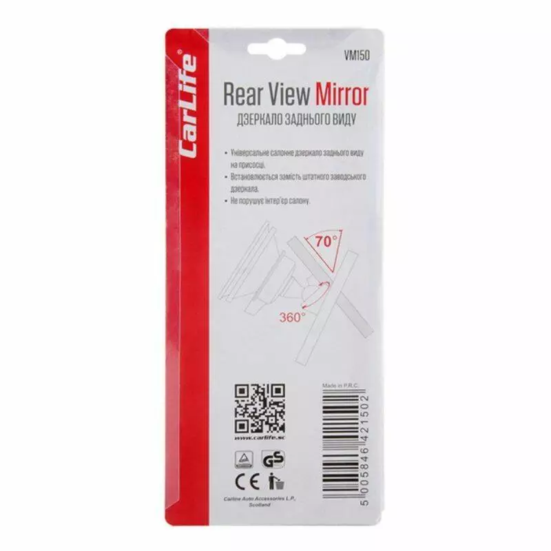 Зеркало стеклянное заднего вида CARLIFE VM150