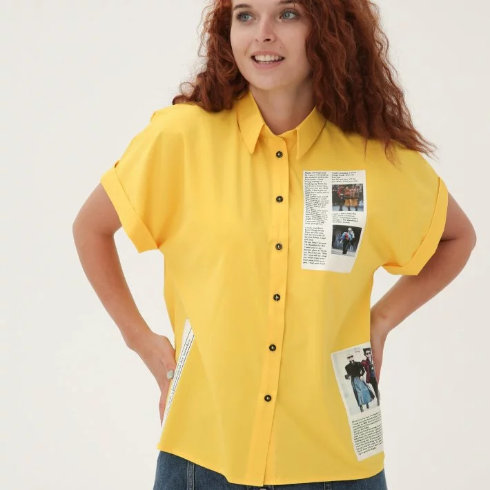 Лаконічна сорочка прямого крою з суцільнокройним рукавом, попереду