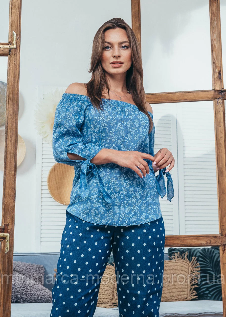 Женская блузка Мара Marca Moderna синяя с цветочным принтом