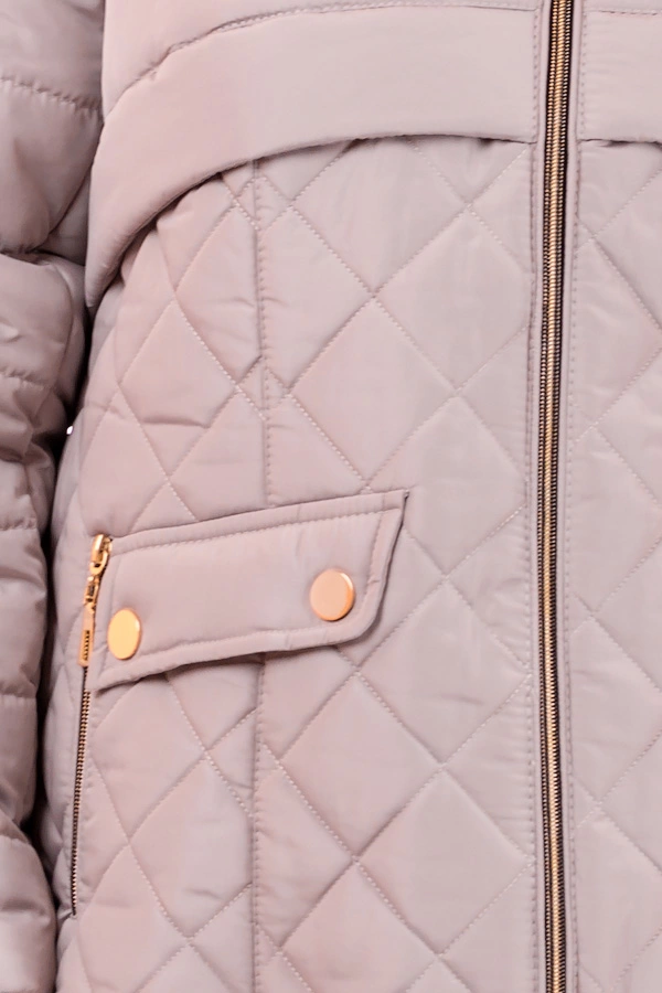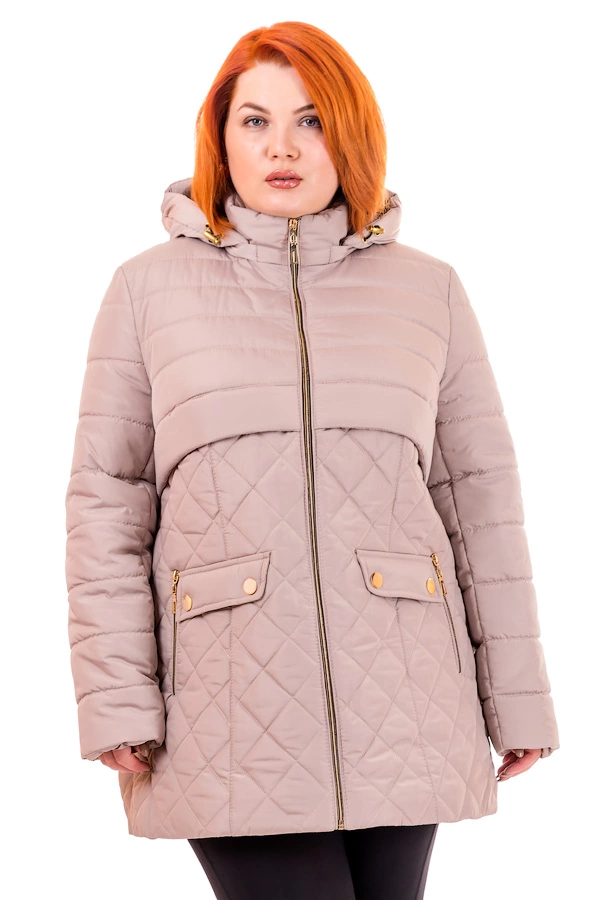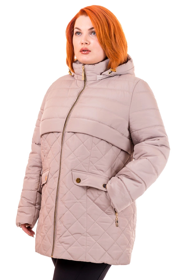 Женская демисезонная стеганая курточка прямого силуэта с капюшоном. По бокам прорезные карманы на молнии. Комбинация двух видов стежки придает особую стройность. Размерный ряд 46-54. Представлена в 5и цветах. Состав: Ткань - плащевка лаке, утеплитель - синтепон(плотность 120), подкладка - нейлон. Длина изделия 76-78 см , длина рукава 63 см