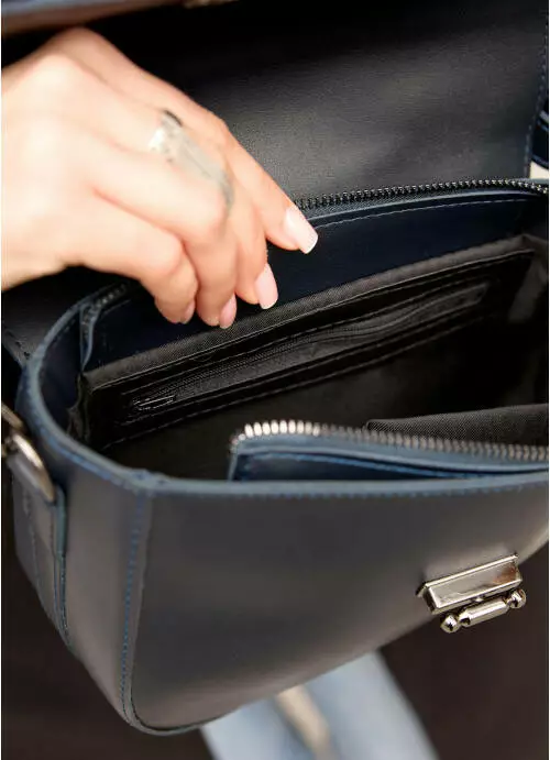 Сумка имеет подкладку и два кармана: открытый и на застёжке.