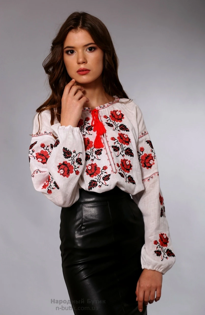 Эта модель вышиванки с узором из роз выполнена в традиционном