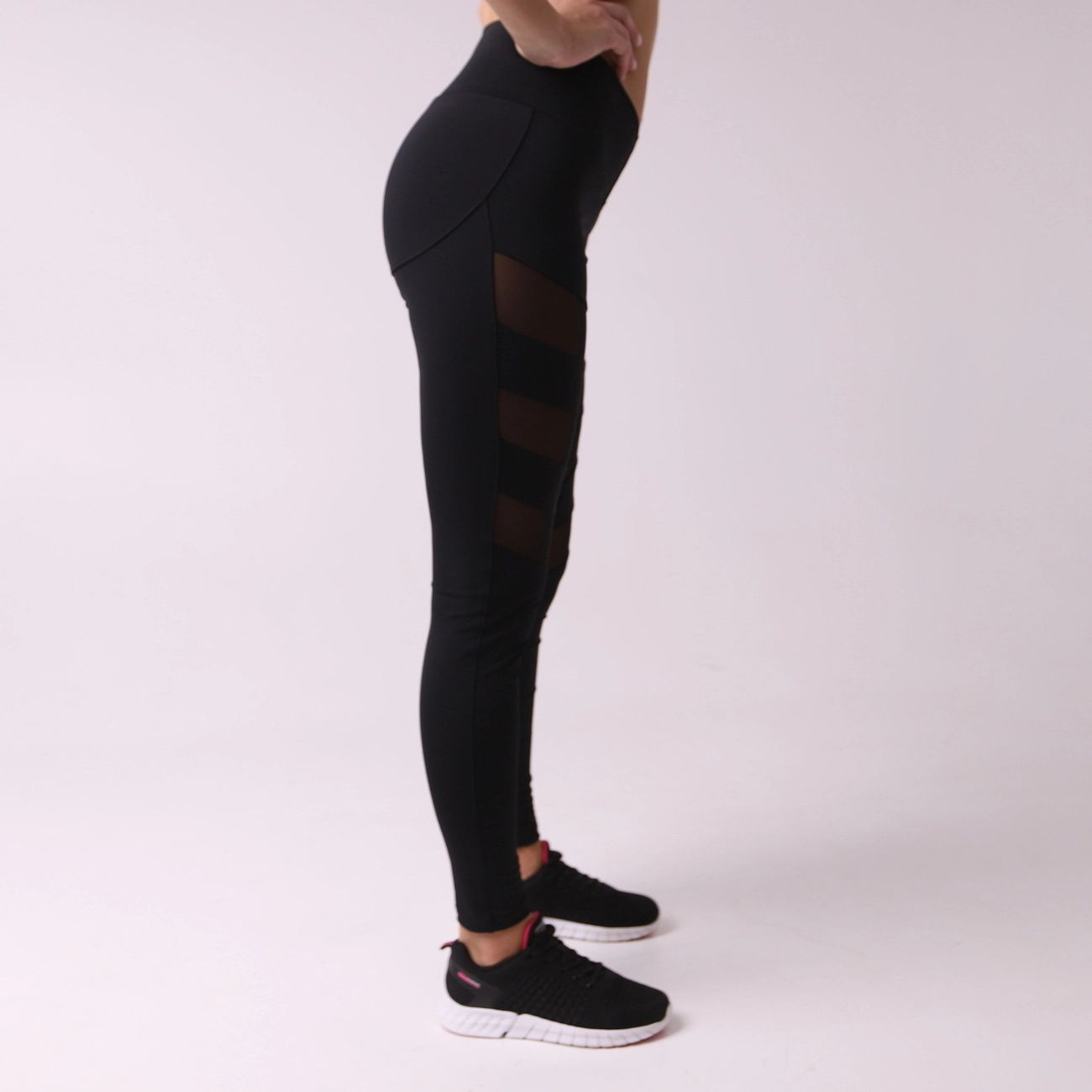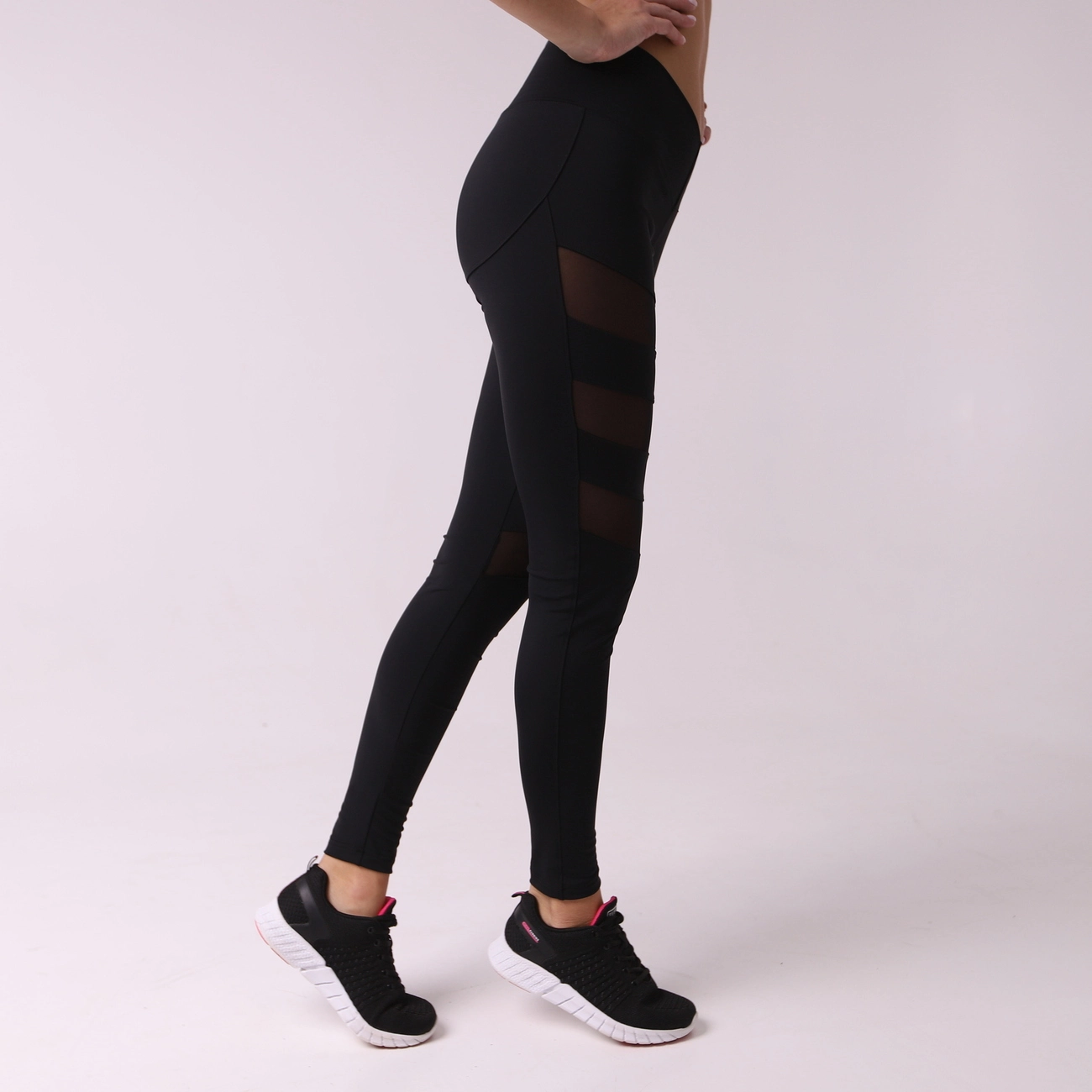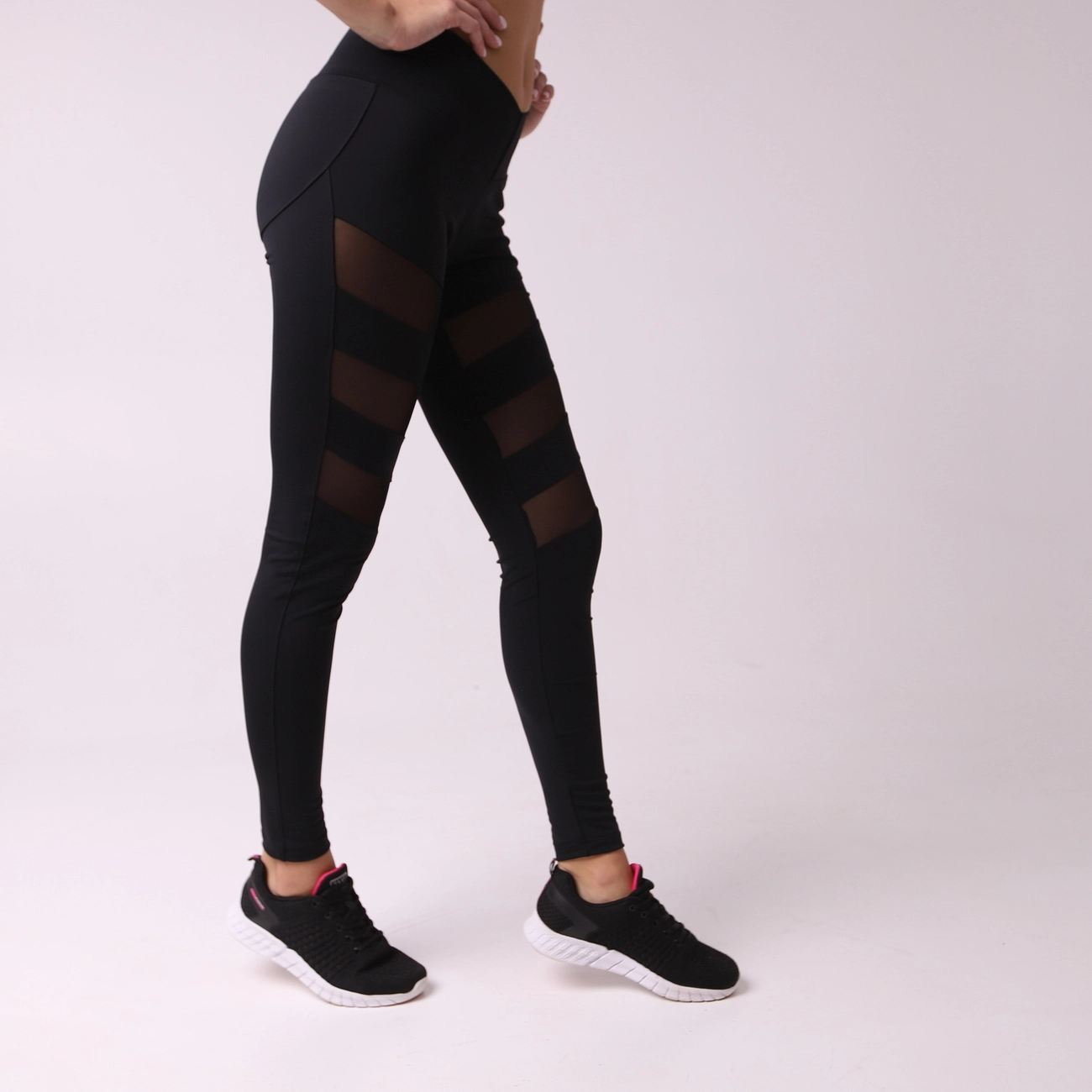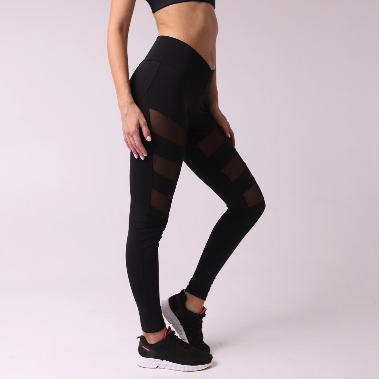 Черные спортивные леггинсы, со вставками из сетки спереди. Очень красивые и стильные, их можно носить не только в зал, но и в повседневной жизни. Изготовлены из бифлекса (80% нейлон, 20% спандекс).  Скрывают недостатки, удобная высокая посадка, отличная утяжка, не сковывают движения. При занятии спортом, вы будете чувствовать себя комфортно и  уверенно, так как они не просвечиваются!