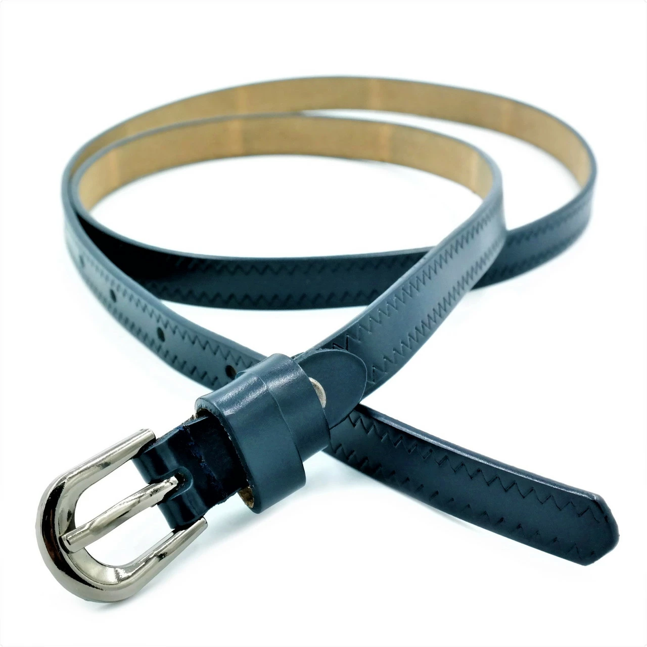 Ремень женский из натуральной кожи, ширина 1,5 см, длина 110-115