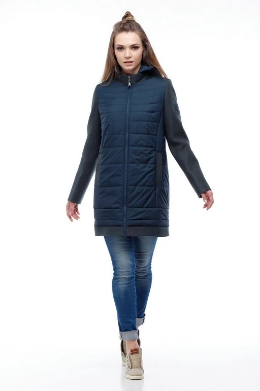 Ультрасовременная комбинированная курточка – последний тренд будущей весны. Свобода движения, многообразие сочетаний с обувью и аксессуарами позволит своей обладательнице быть на вершине каждый день, удивлять, восхищать и очаровывать. Модное сочетание двух видов ткани в одной модели: рукава, спинка и воротник изделия из шерсти, передняя полочка и отстегивающийся капюшон из оригинально простроченной плащевки. Модель прямого кроя, многоступенчатый низ. Застежка по центру изделия и карман-листочка на молнии.