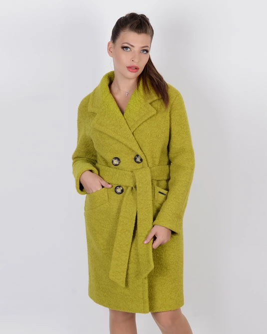 Двубортное пальто букле лимон