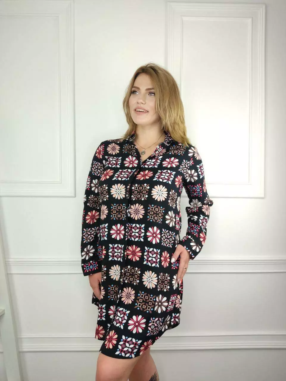 Женское платье-рубашка цветочное, хлопок-ликра, размеры 46,48,50,52,54