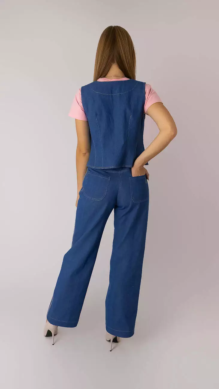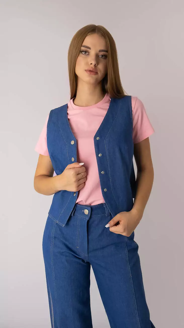Жилет жіночій на кнопках з щільного котону темно-блакитного кольору.