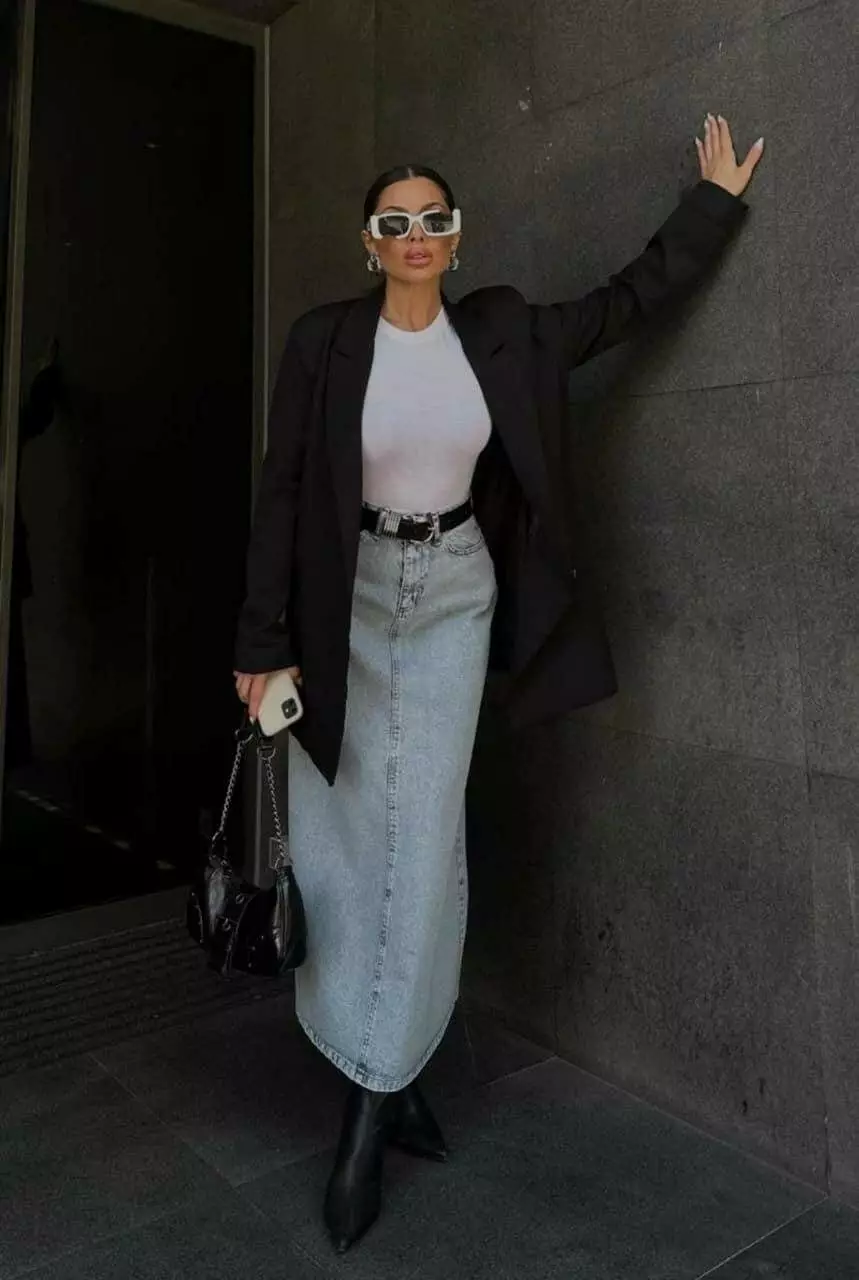 Жіноча довга джинсова спідниця 9594/1