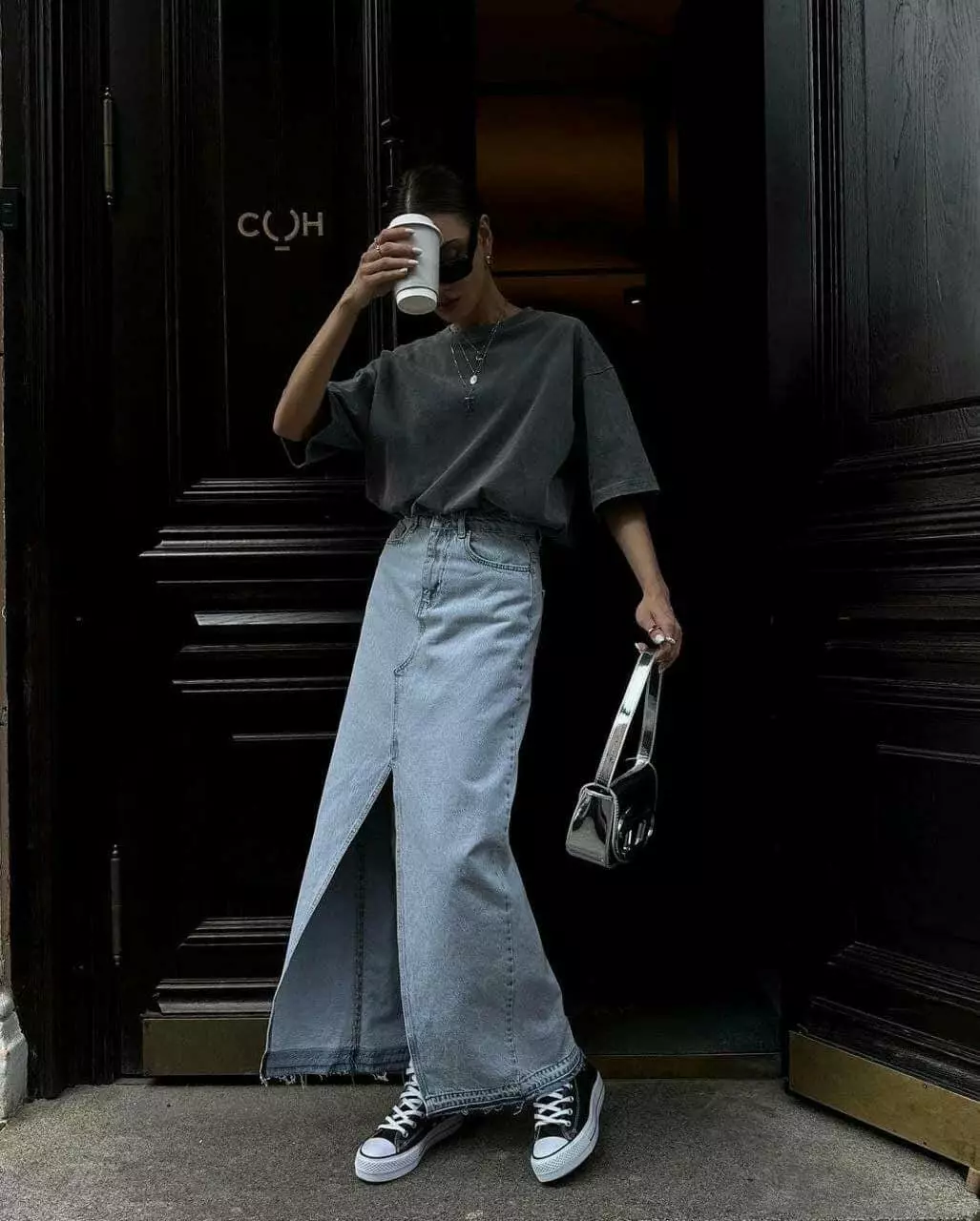Жіноча довга джинсова спідниця з розрізом 3111