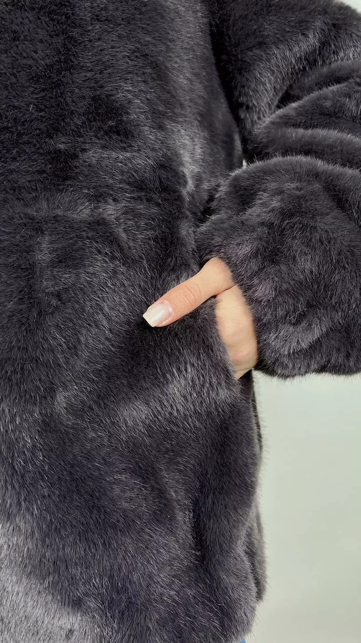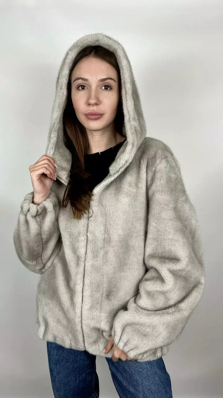 Жіноча еко-шубка з капюшоном