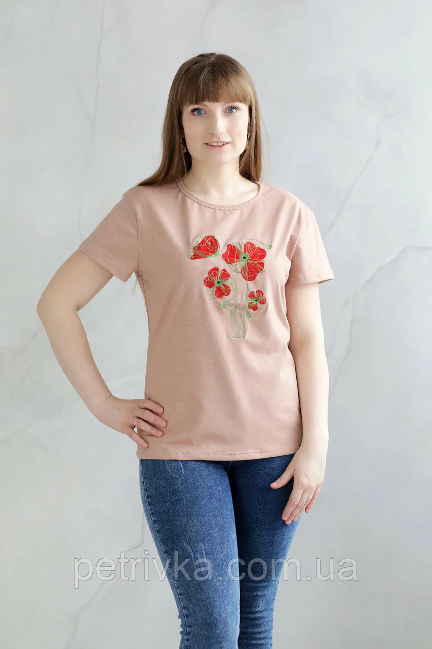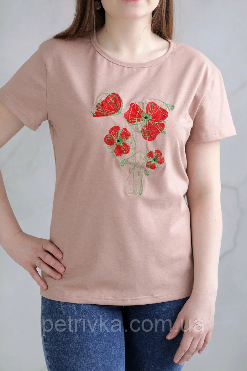 Жіноча футболка в стилі CASUAL, з вишитим принтом Квіти.