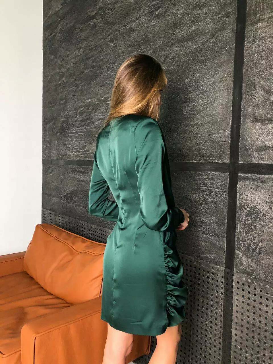 Жіноча кокетлива сукня ГРАЦІЯ з шовку Армані смарагдового кольору
