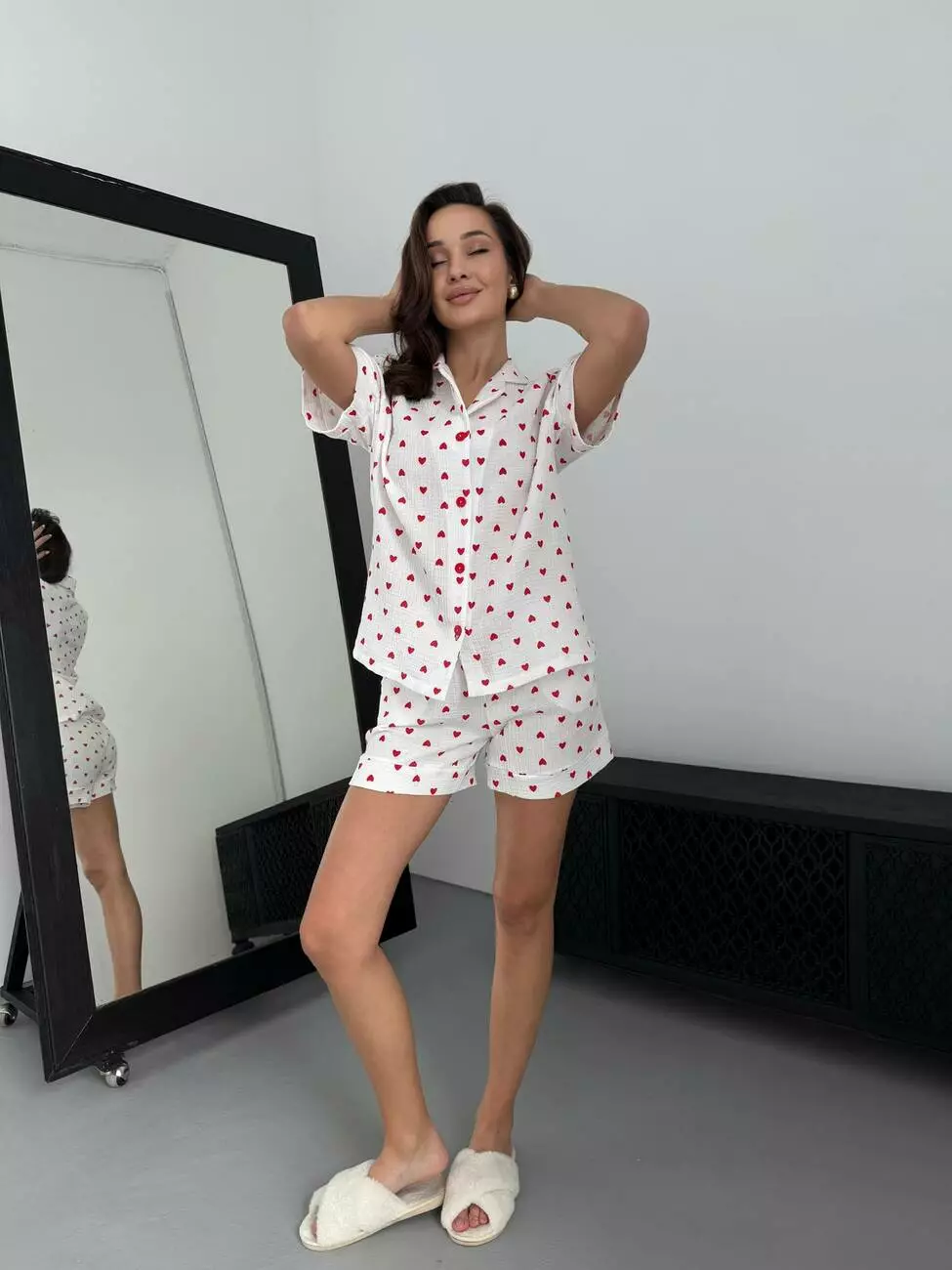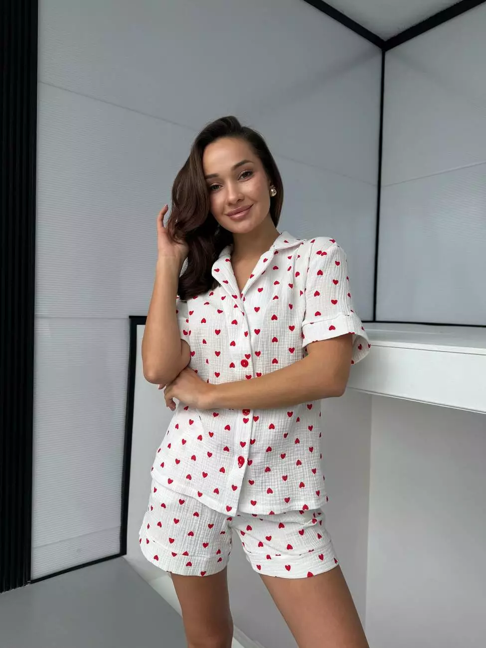 Жіноча муслінова піжама з принтом у вигляді сердечок